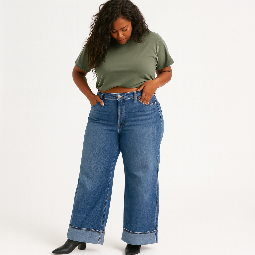 Designed specifically for bodies with fuller seats and hips—not just scaled-up straight-size patterns. That means room for your thighs and curves without tightness or constant adjustment.